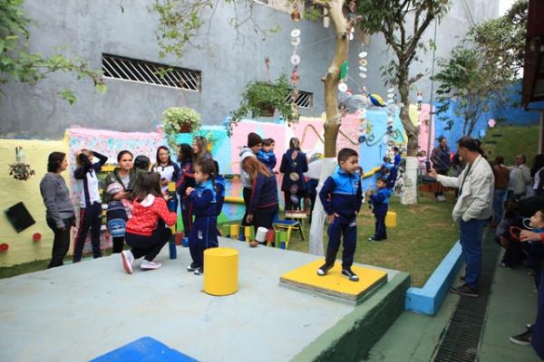 O Parque Sonoro foi construído aos poucos, entre os meses de março e julho deste ano. Inaugurado na última sexta-feira (17), o espaço é destinado para crianças de 0 a 5 anos de idade e foi planejado em parceria com os membros do Conselho Escolar, cozinheiras e com o apoio dos pais que acreditaram e abraçaram a proposta.