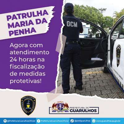 A Patrulha Maria da Penha da Guarda Civil Municipal (GCM) de Guarulhos ampliou para 24 horas as rondas voltadas ao atendimento de mulheres em situação de violência doméstica. O remanejamento do quadro operacional da equipe irá reforçar a fiscalização de mais de 200 medidas judiciais que protegem mulheres sob ameaça ou risco de morte da aproximação de seus agressores por meio de monitoramentos no entorno de suas residências e de aconselhamento especializado.