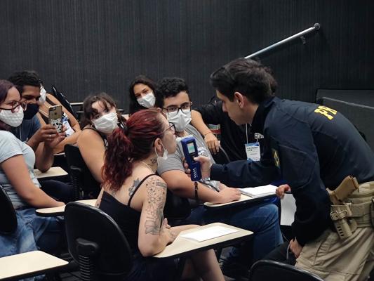 Os jovens puderam conferir também como é o funcionamento do etilômetro – aparelho que afere a quantidade de álcool no sangue - por meio de uma demonstração realizada pela Polícia Rodoviária Federal.
