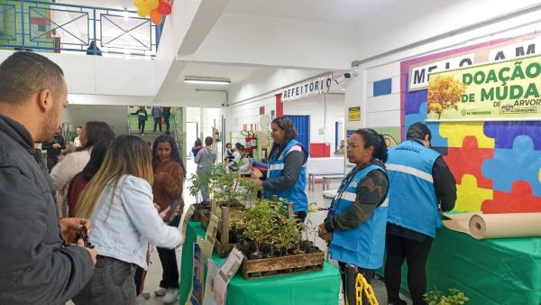 Além dos plantios, a Secretaria do Verde, Clima e Sustentabilidade (SVCS) distribuiu para os alunos e familiares 300 mudas de árvores nativas da Mata Atlântica, dentre elas mudas de araçá-vermelho, pitanga, ipê-amarelo.