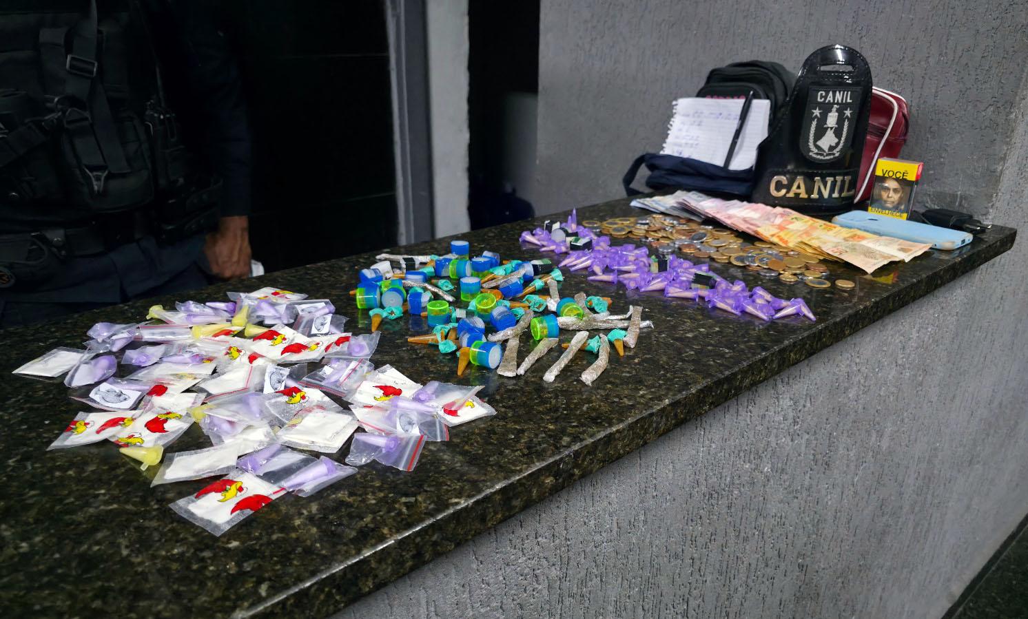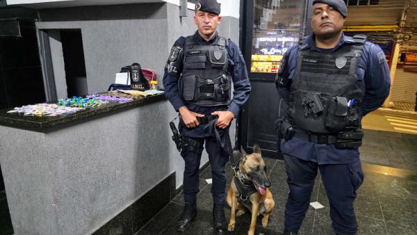 Na primeira ocorrência, agentes do Canil capturaram um criminoso na rua Lesta, na Vila Rio de Janeiro, durante policiamento municipal pela região. Ele foi preso portando uma pochete que continha substâncias ilícitas em seu interior, além de 683 reais em dinheiro. O indivíduo foi encaminhado ao 1º Distrito Policial (Avenida Monteiro Lobato, 244 – Centro), onde a autoridade de plantão lavrou boletim de ocorrência por tráfico de entorpecentes, após o laudo pericial positivar para 157 embalagens contendo cocaína e outras 66 com maconha.