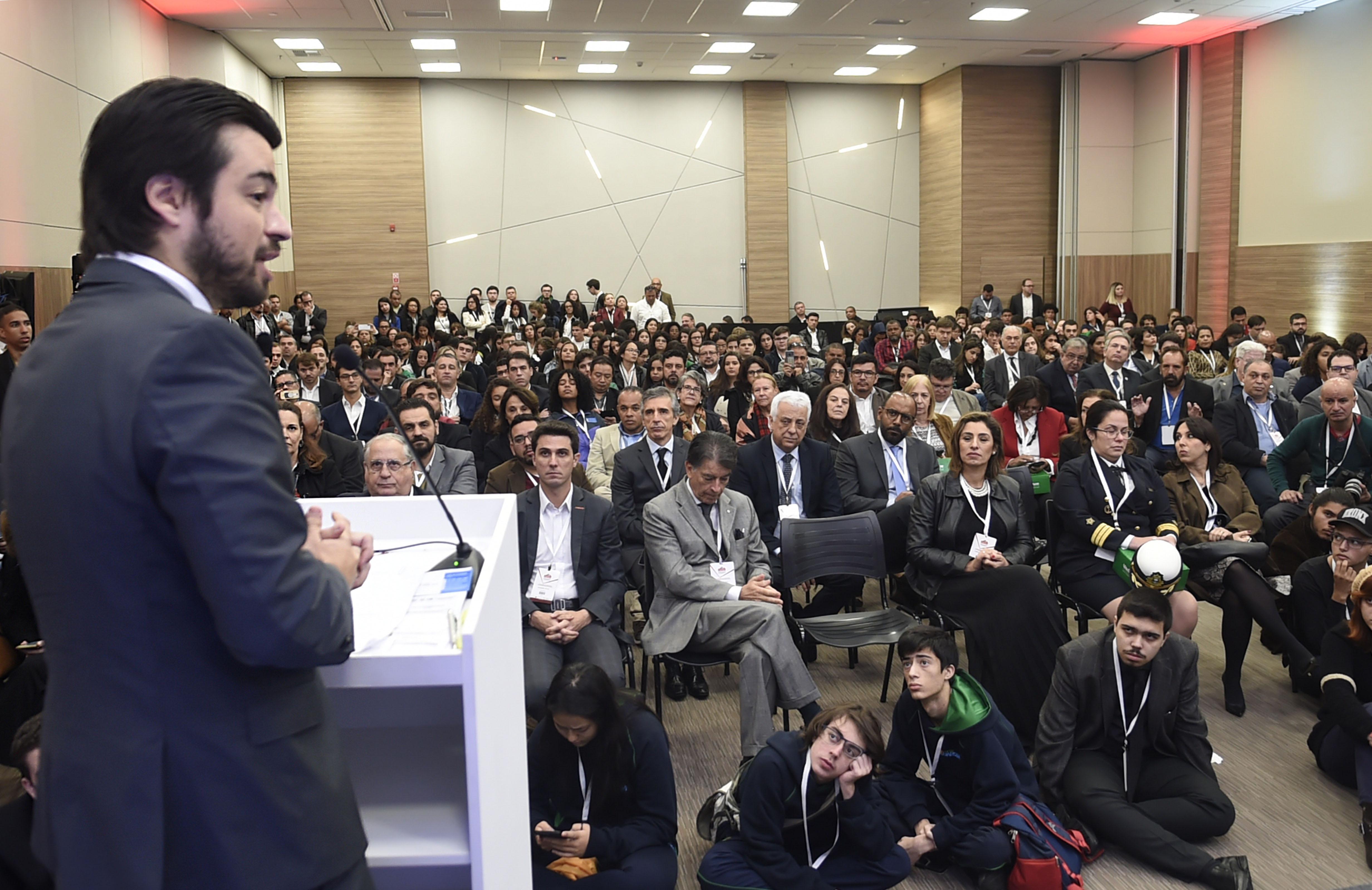 O prefeito de Guarulhos, Guti, o secretário da Desenvolvimento Científico, Econômico, Tecnológico e de Inovação (SDCETI), Rodrigo Barros, o secretário da Fazenda e Planejamento do Estado de São Paulo, Henrique Meirelles, o ex-governador de São Paulo, Geraldo Alckmin, o ex-presidente do BNDES, Paulo Rabello, o presidente da Eletrobras, Wilson Ferreira, e outras autoridades falaram sobre o crescimento econômico em escala municipal, estadual e nacional para uma plateia de empresários e estudantes.