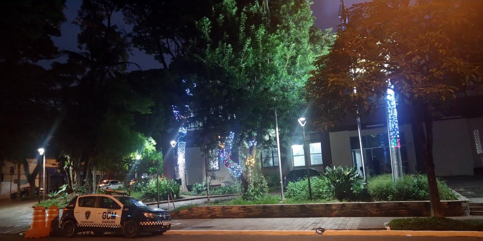 A mais tradicional praça de Guarulhos, a Getúlio Vargas, na região central, está mais bonita e iluminada, graças à decoração natalina viabilizada por intermédio da parceria entre a Prefeitura e os comerciantes do entorno.