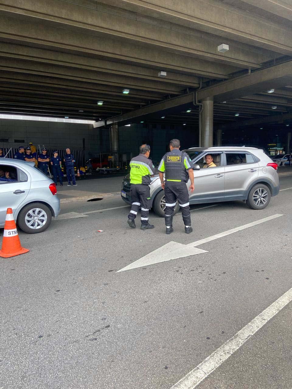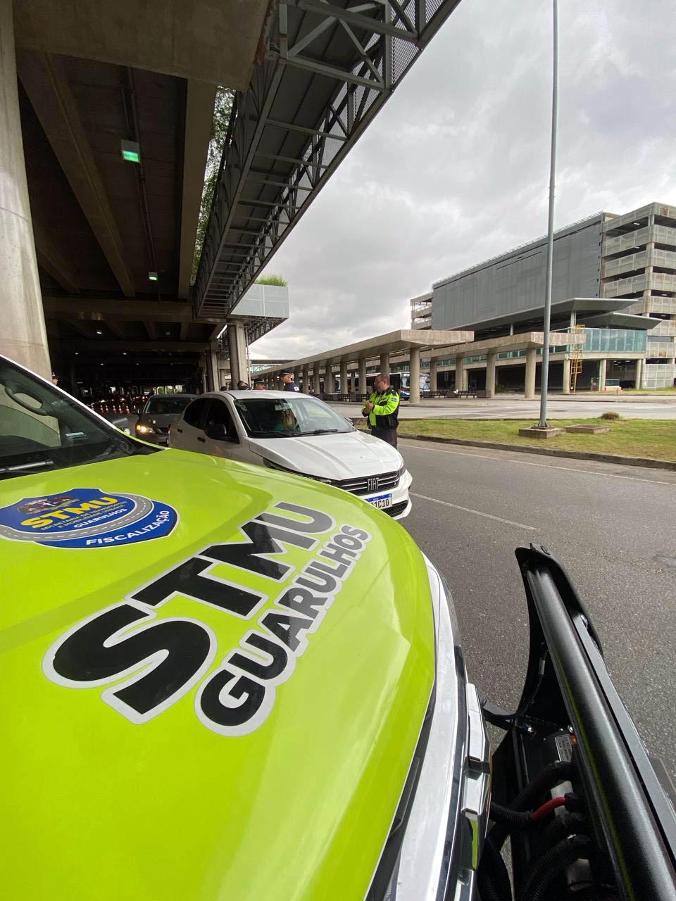 A Guarda Civil Municipal (GCM) de Guarulhos e a Secretaria de Transportes e Mobilidade Urbana (STMU) autuaram e apreenderam 57 veículos no aeroporto internacional nesta quarta (27) e quinta-feira (28). Dentre eles, uma motocicleta e um automóvel foram recolhidos após os agentes da Inspetoria de Trânsito da GCM flagrarem seus condutores na prática irregular de transporte clandestino de passageiros.