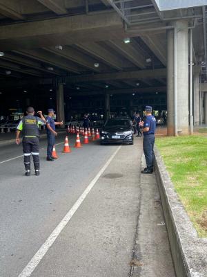 Já são 41 veículos multados e removidos pela GCM por transporte clandestino no terminal de desembarque do aeroporto neste ano, após GCMs flagrarem motoristas que executavam os serviços de transporte sem cadastro ou com carros inadequados, colocando os clientes em risco.