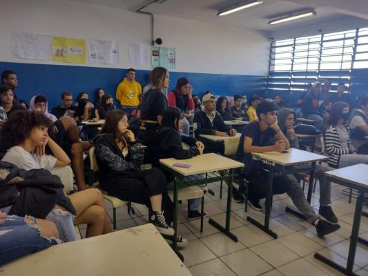 Os alunos assistiram a palestras sobre carreiras profissionais, entre elas a advocacia e a militar, cursos técnicos e a importância de uma segunda língua no currículo.