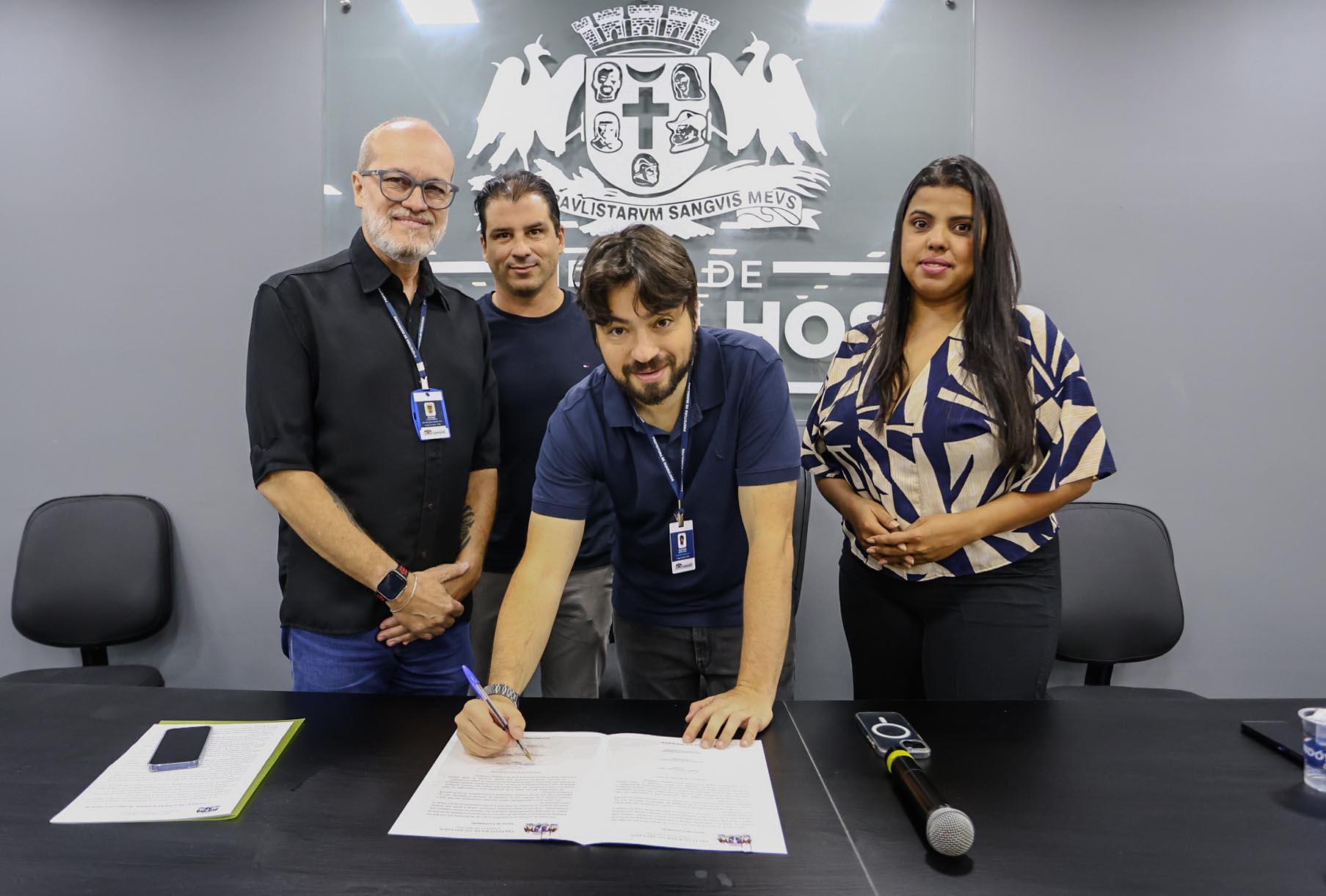 O prefeito Guti assinou na manhã desta quinta-feira (5), no Paço Municipal, o contrato trabalho entre a Prefeitura de Guarulhos e as cooperativas de catadores de materiais recicláveis da cidade. Também assinaram o documento representantes das cooperativas Nova Vida, Eco Guarulhos, Novo Bambi, Nova Vida, Vila Renata, Novo Ciclo, Luta e Vida e Guarulhos Recicla. Com a regularização, o munícipio irá pagar R$ 674,38 por tonelada de materiais recebidos pelas entidades.
