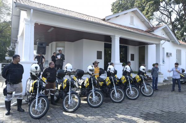 A Prefeitura de Guarulhos entregou na manhã desta quinta-feira (27), no Paço Municipal, seis motos Honda XRE-350 para uso dos agentes de fiscalização do Departamento de Transportes da Secretaria de Mobilidade Urbana (STMU). Agora a frota está reforçada para desenvolver o trabalho de não permitir a ação de ônibus, táxis e vans clandestinas.