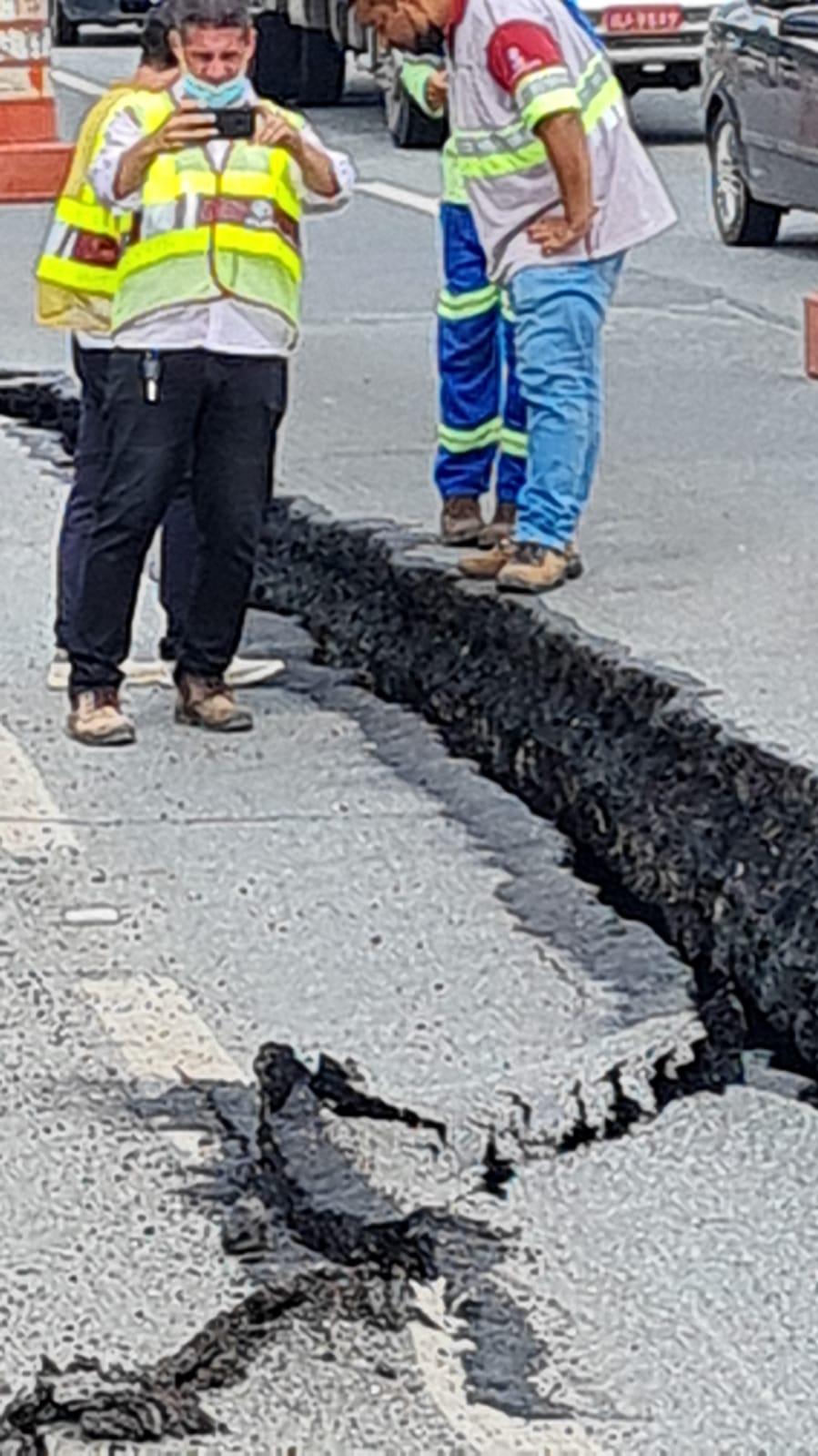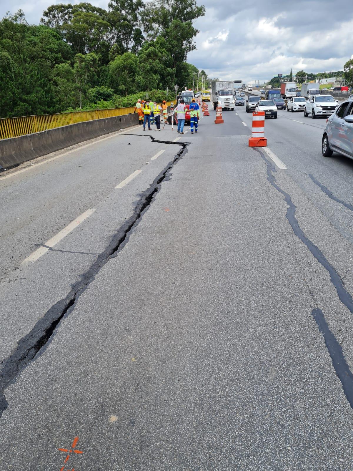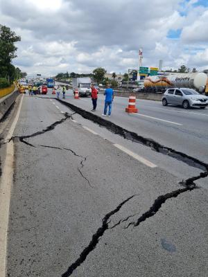 Duas faixas da pista lateral da rodovia Presidente Dutra, na altura do km 214, sentido São Paulo, em Guarulhos, estão interditadas devido a um afundamento do solo que ocorreu no início da tarde desta quinta-feira (6). A Prefeitura, por meio da Secretaria de Obras e da Defesa Civil, imediatamente se dirigiu ao local para verificar a situação e pedir sua interdição, além de providências imediatas para que o problema seja solucionado.