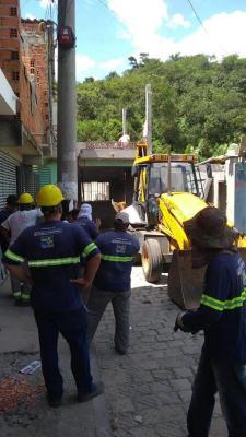 A Prefeitura de Guarulhos realizou nesta quinta-feira (4) o desfazimento de uma garagem em alvenaria construída em área pública e de preservação ambiental na rua Monte Verde, na região do bairro Cidade Soberana. A edificação irregular também contribuía para constantes alagamentos no local, uma vez que obstruía o escoamento das águas das chuvas.