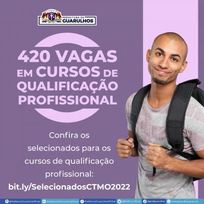 A Prefeitura de Guarulhos divulgou nesta quarta-feira (2) a lista com os nomes dos alunos selecionados para os programas de qualificação profissional do Centro de Treinamento de Mão de Obra (CTMO). A classificação pode ser conferida no link https://bit.ly/SelecionadosCTMO2022.