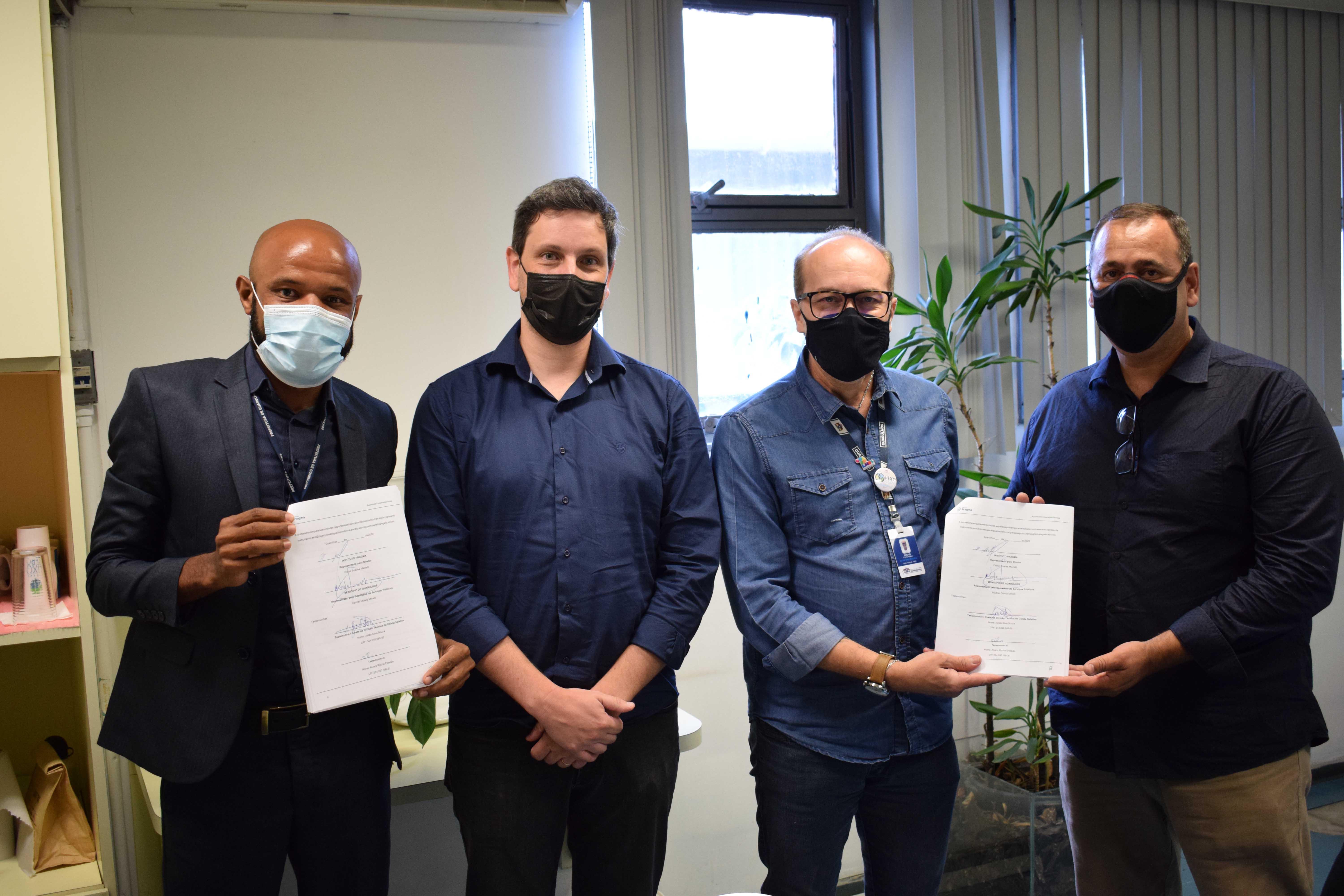 A Prefeitura de Guarulhos e o Instituto Pragma Soluções Sustentáveis assinaram nesta quinta-feira (17), na sede da Secretaria de Serviços Públicos (SSP), acordo de cooperação técnica para a participação de integrantes de organizações de catadores de artigos recicláveis em programas e ações de organização, estruturação e regularização promovidas pelo instituto.