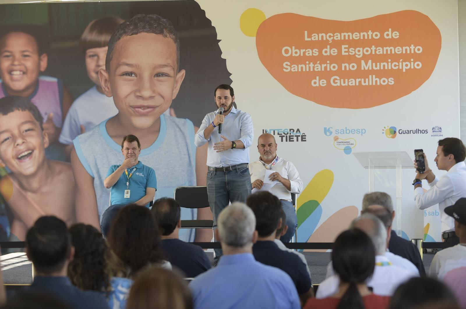 A Prefeitura de Guarulhos e a Sabesp (Companhia de Saneamento Básico do Estado de São Paulo) anunciaram, nesta quinta-feira (27), o Lançamento de Obras de Esgotamento Sanitário no município, como parte do Programa Integra Tietê. A cerimônia, realizada na Estação de Tratamento de Esgoto (ETE) São João, contou com a presença de autoridades como o prefeito de Guarulhos, Lucas Sanches, e do corpo técnico da companhia.