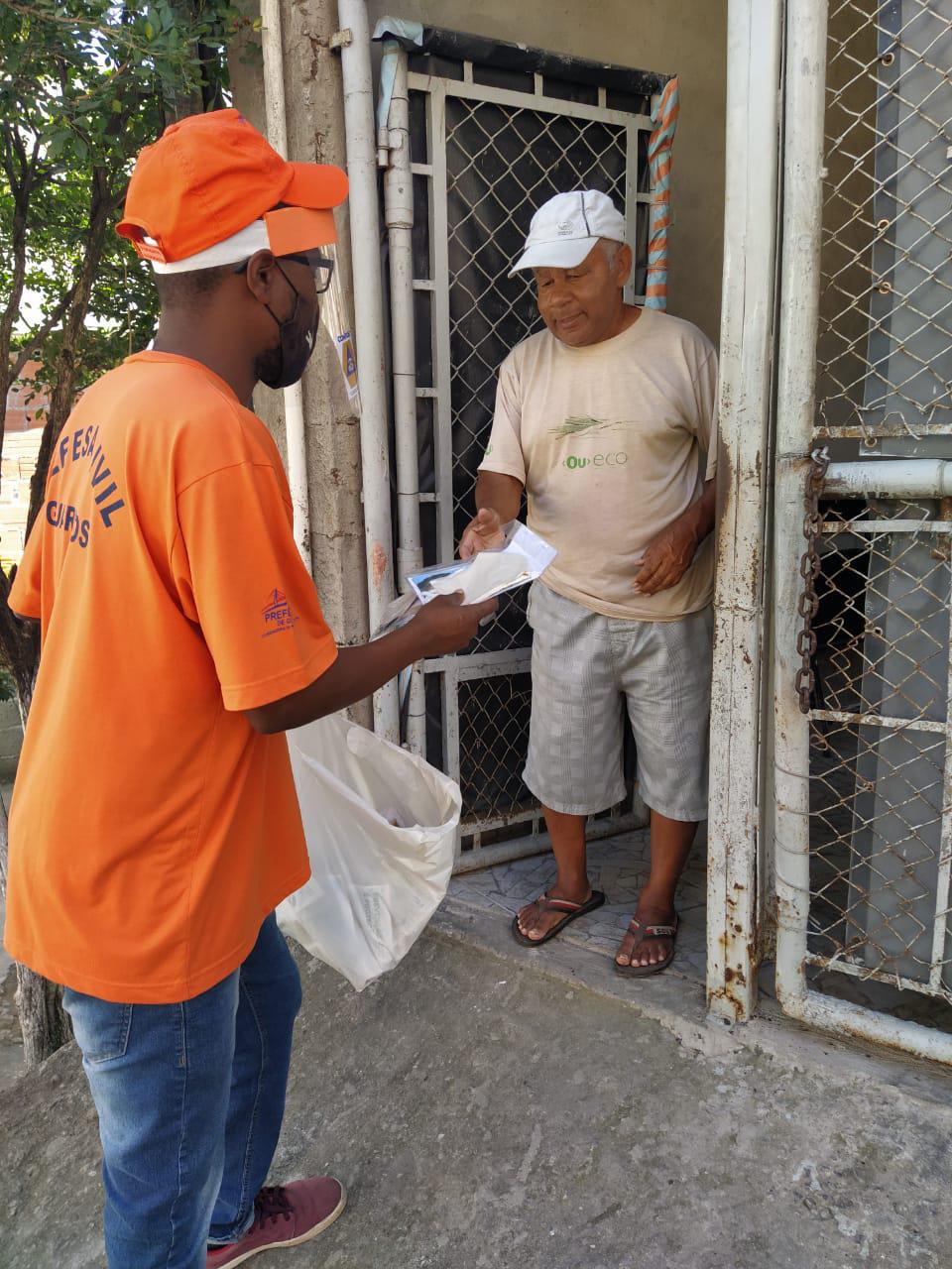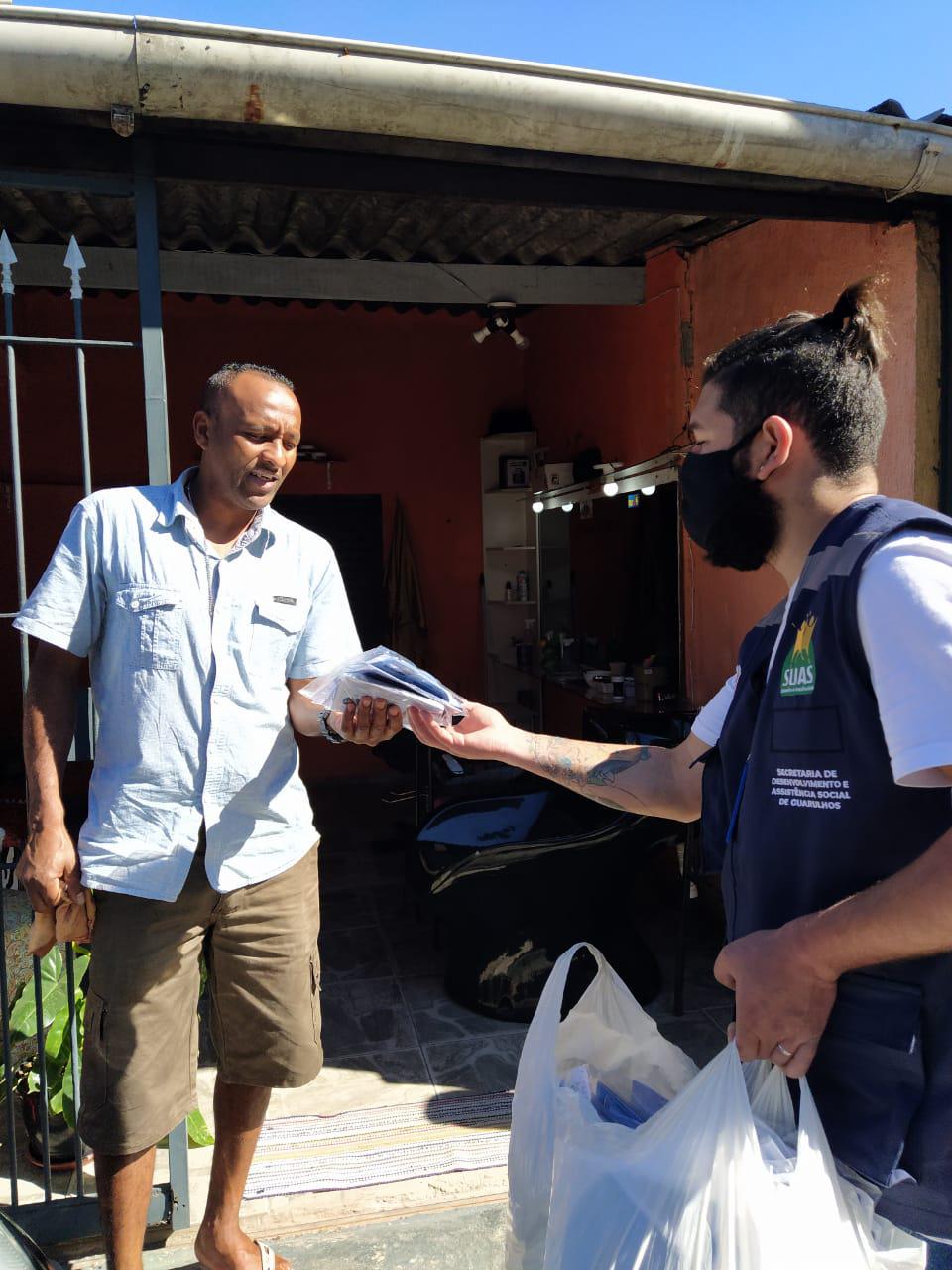 Os kits são montados com máscaras de pano doadas por costureiras voluntárias e por empresas. A entrega é feita por funcionários das secretarias de Desenvolvimento e Assistência Social e de Habitação, além da Defesa Civil.