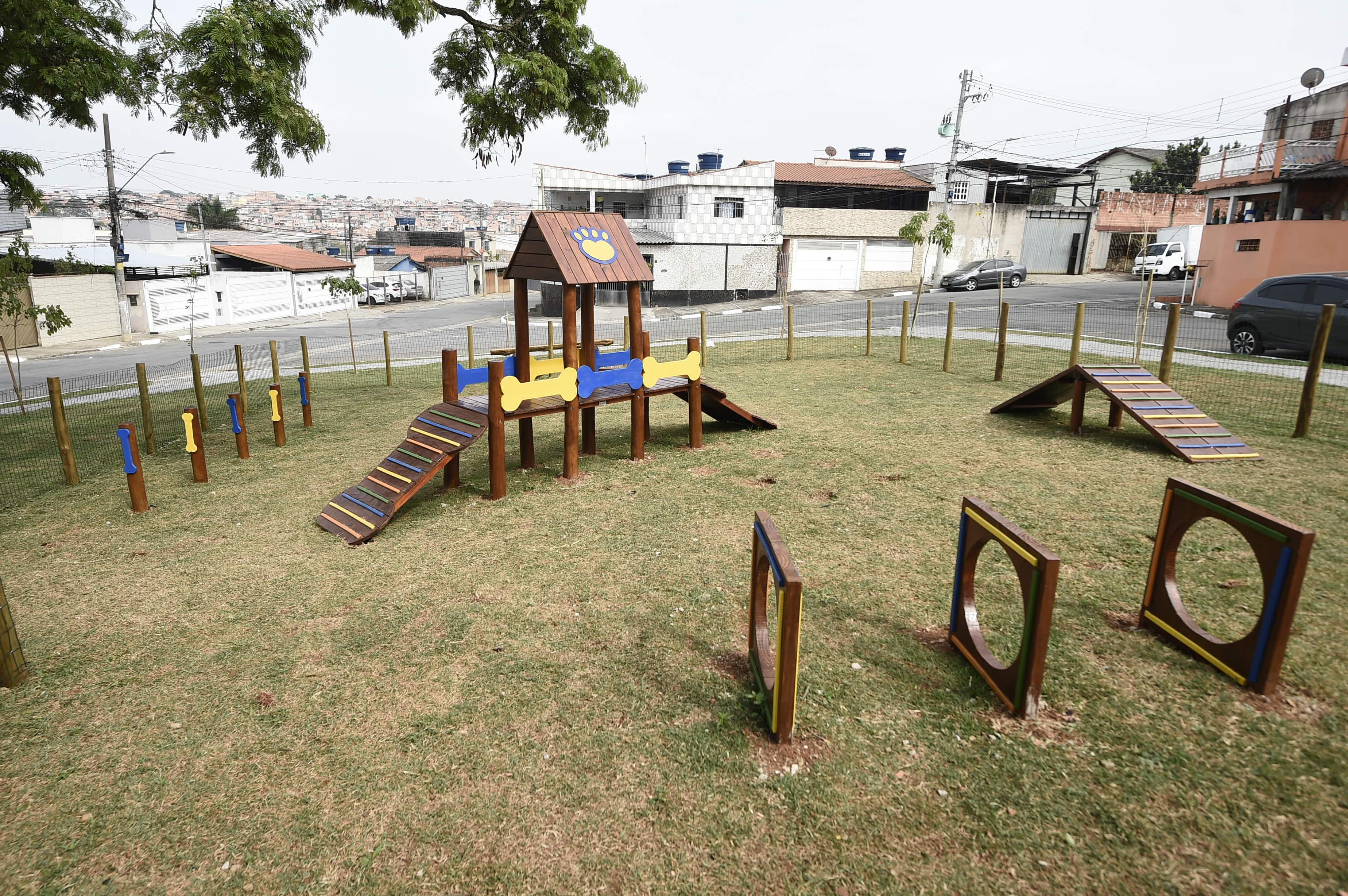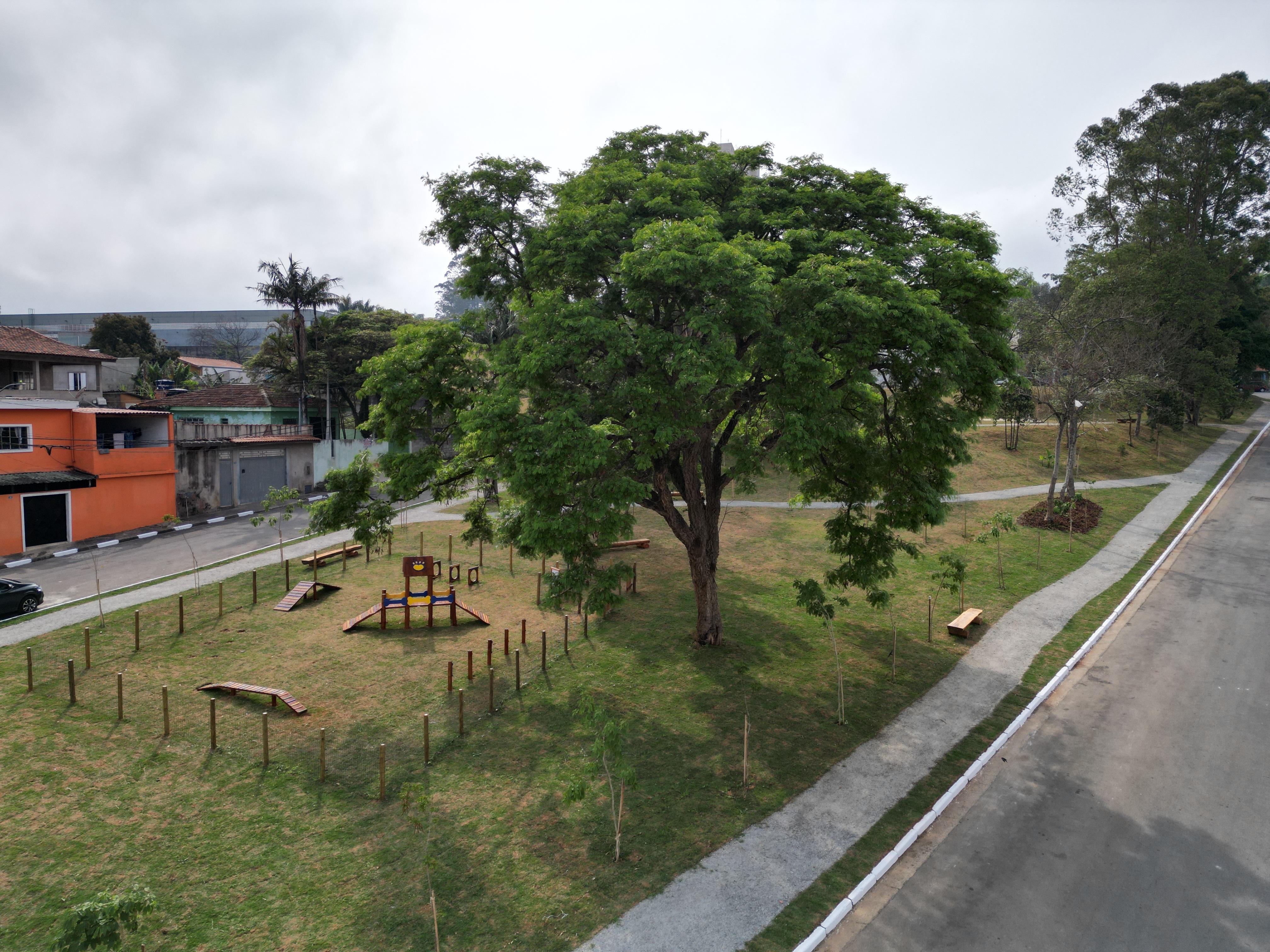 A nova praça conta ainda com um playground completo, equipado com casa do Tarzan, balanços e gangorras, garantindo diversão segura para as crianças. Os tutores de pets também foram contemplados com um pet park de 180 m², com equipamentos específicos para os animais.