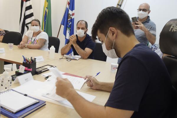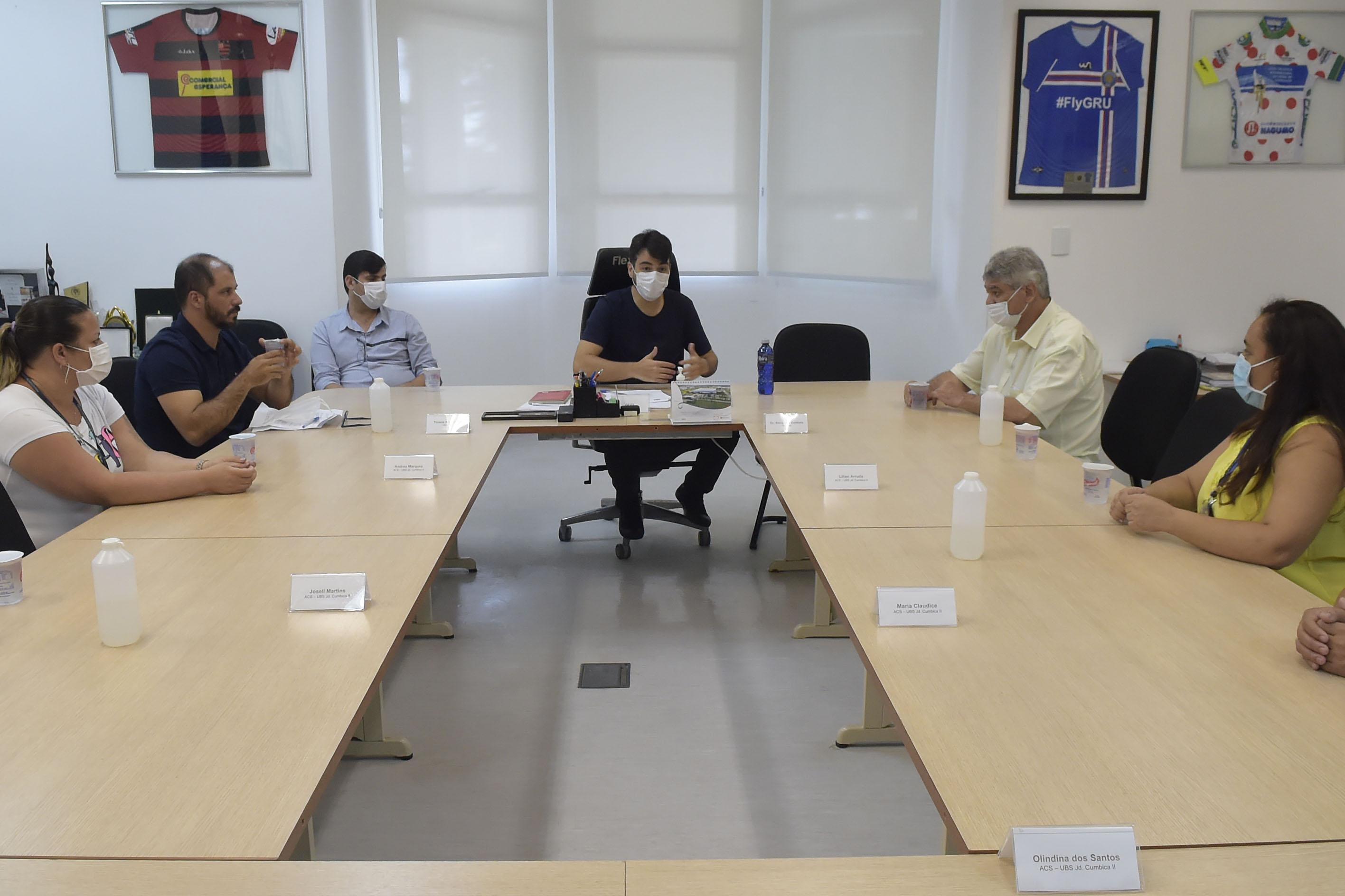 A Prefeitura de Guarulhos enviou à Câmara Municipal nesta terça-feira (2) o projeto de lei 798/2021, que versa sobre a manutenção do emprego de agente comunitário de saúde (ACS). Nesta manhã o prefeito Guti, ao lado dos vereadores Alexandre Dentista e Ticiano Americano, recebeu representantes do grupo para apresentar a proposta.