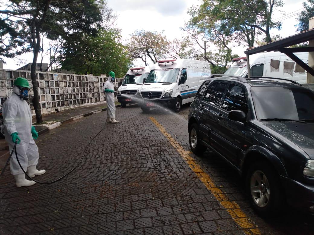 A ação sanitária promovida com o objetivo de combater o novo coronavírus foi realizada nos pontos de maior movimentação de pessoas, como recepção, atendimento, velório, sanitário e áreas externas do cemitério, que é o maior da cidade.