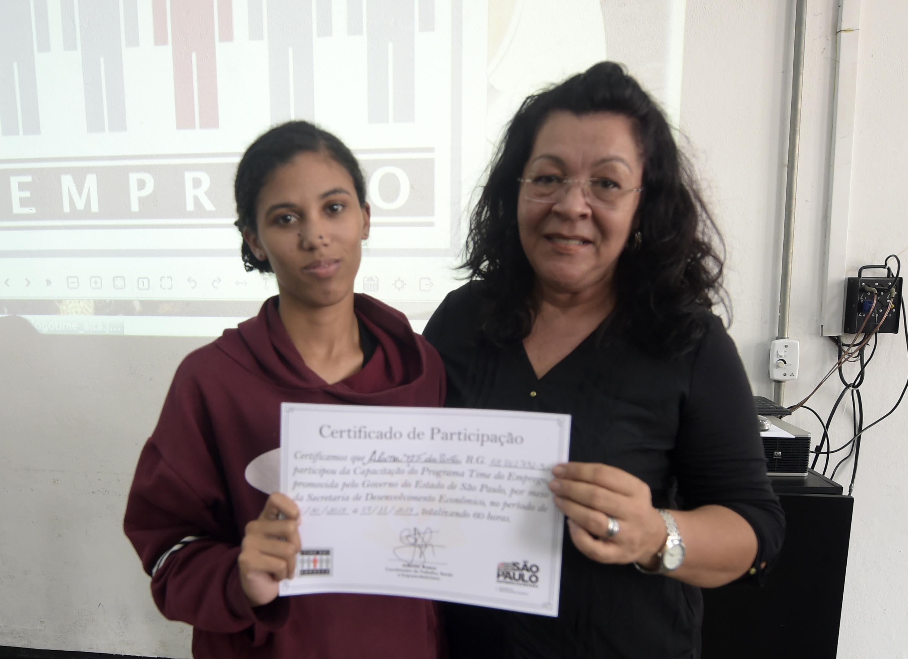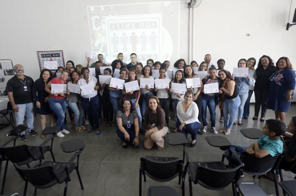 Cerca de 30 alunos receberam na tarde desta terça-feira (12) seus certificados pela conclusão da 10ª edição do curso Time do Emprego, oferecido gratuitamente pela Prefeitura de Guarulhos e viabilizado pela Secretaria do Trabalho em parceria com o Governo do Estado.