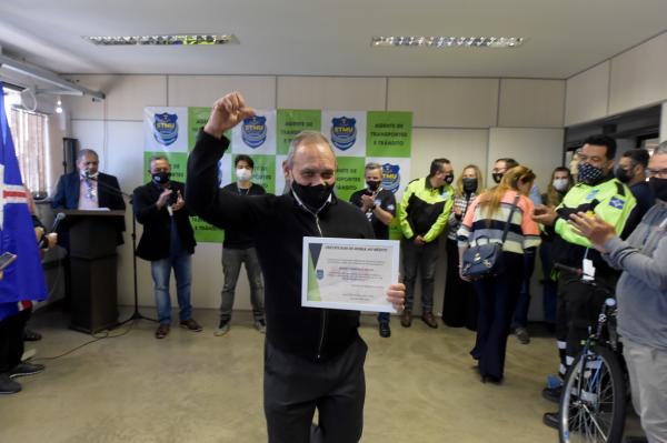 Recém-aposentado, o agente de trânsito Moizés Francisco Paulo, que exerceu a função durante 11 anos, foi homenageado com um certificado de honra ao mérito em reconhecimento aos serviços prestados em benefício do trânsito do município. “Eu iniciava as atividades às 4h da manhã. Foram anos de muito trabalho duro e diversos aprendizados. Essa experiência foi uma escola para mim. Gratidão a todos os meus parceiros pelas experiências e ensinamentos compartilhados”, salientou.