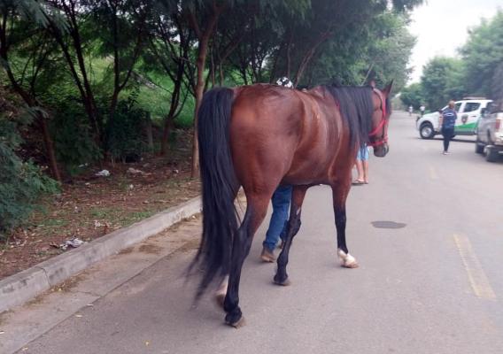 Com o apoio da Inspetoria Ambiental da Guarda Civil Municipal (GCM), o Departamento de Proteção Animal (DPAN) de Guarulhos impediu a realização de uma corrida de charretes neste domingo (14) na Vila Santo Henrique, bairro localizado na altura do número 280 da rodovia Ayrton Senna. Um dos cavalos que estava amarrado à charrete na pista foi removido e permanece sob os cuidados do DPAN.