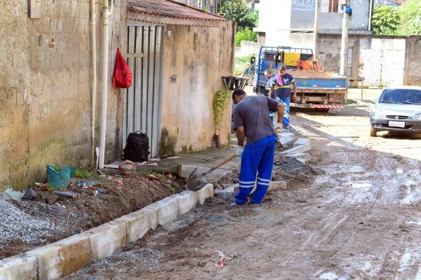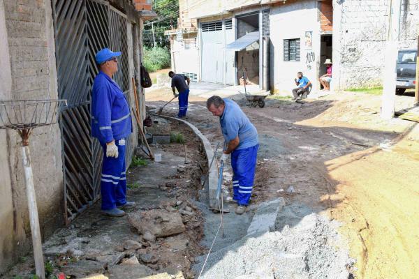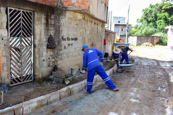A Prefeitura de Guarulhos iniciou as obras de pavimentação na rua rio Negro, no bairro Cidade Soberana, nesta segunda-feira (8). Por meio do sistema Mãos à Obra, no local estão sendo instaladas guias e sarjetas para posterior nivelamento da rua, que receberá 900 m² de pavimento intertravado e 450 m2 de concreto.