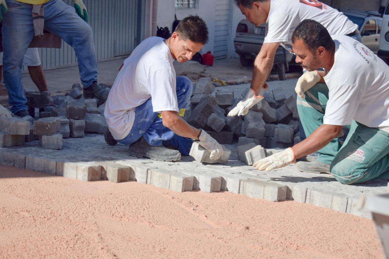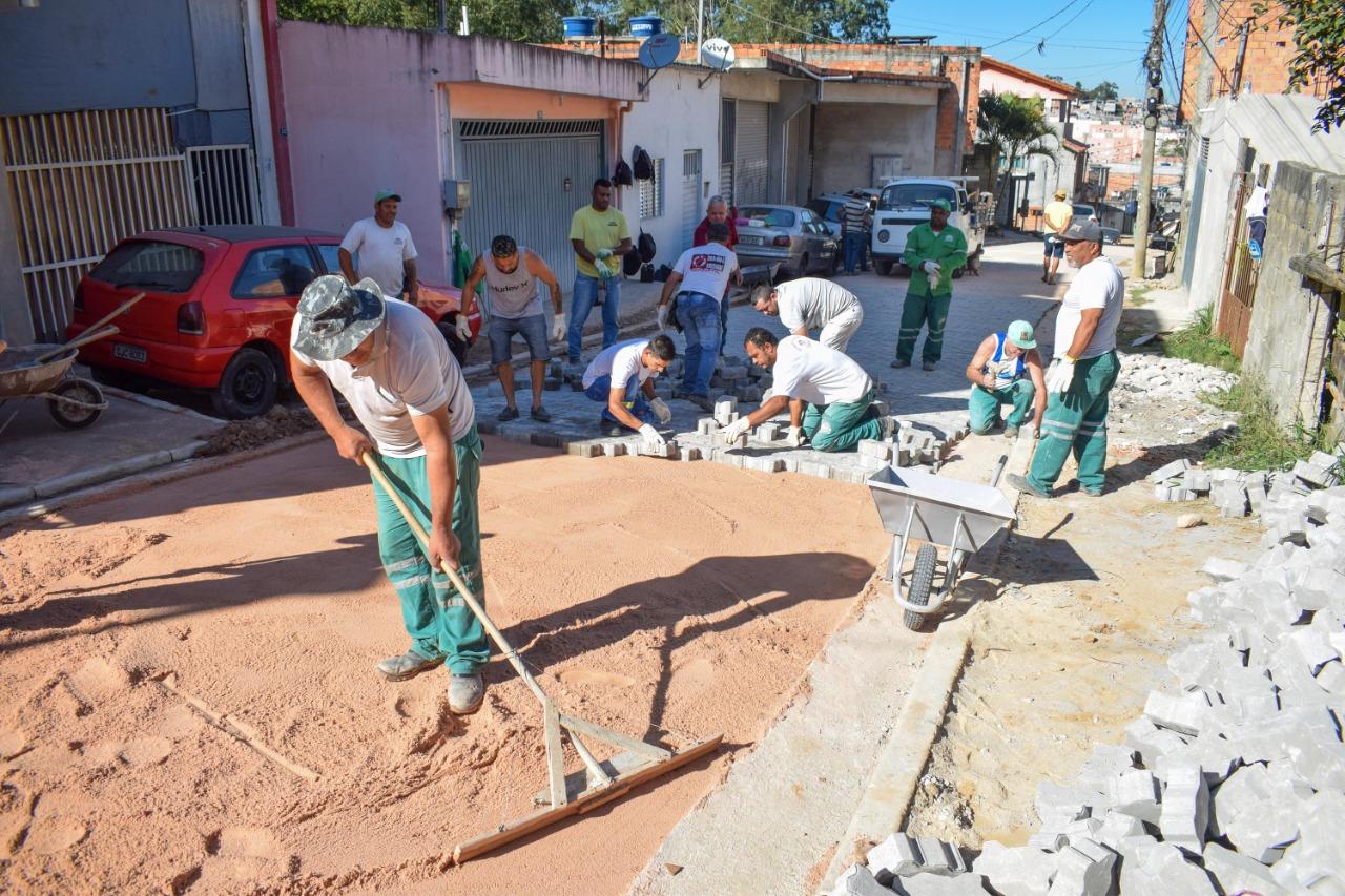 Outras pavimentações estão em andamento em mais de 7 mil m² de vias no Parque Primavera, no Jardim Santa Edwirges, no Recreio São Jorge e no Jardim Ponte Alta.