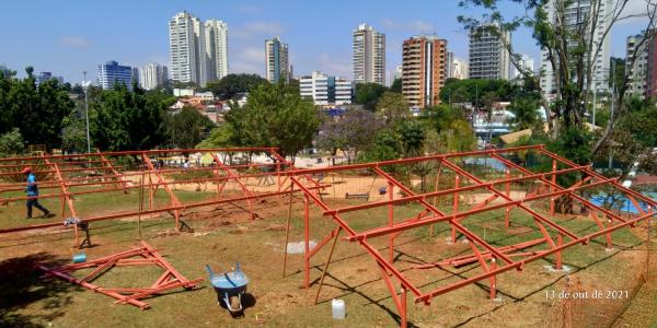 Teve início nesta semana no Bosque Maia, próximo às pistas de skate, a instalação da estrutura que vai receber 87 placas de energia fotovoltaica (que transforma luz solar em energia elétrica). Quando em funcionamento, o equipamento adquirido através de termo de compromisso ambiental, ou seja, sem custos para a Prefeitura, vai suprir toda a necessidade de energia do parque, gerando economia de cerca de R$40 mil anuais ao município. O novo sistema deverá estar ativo até o fim do próximo mês.