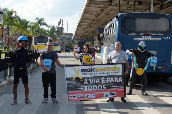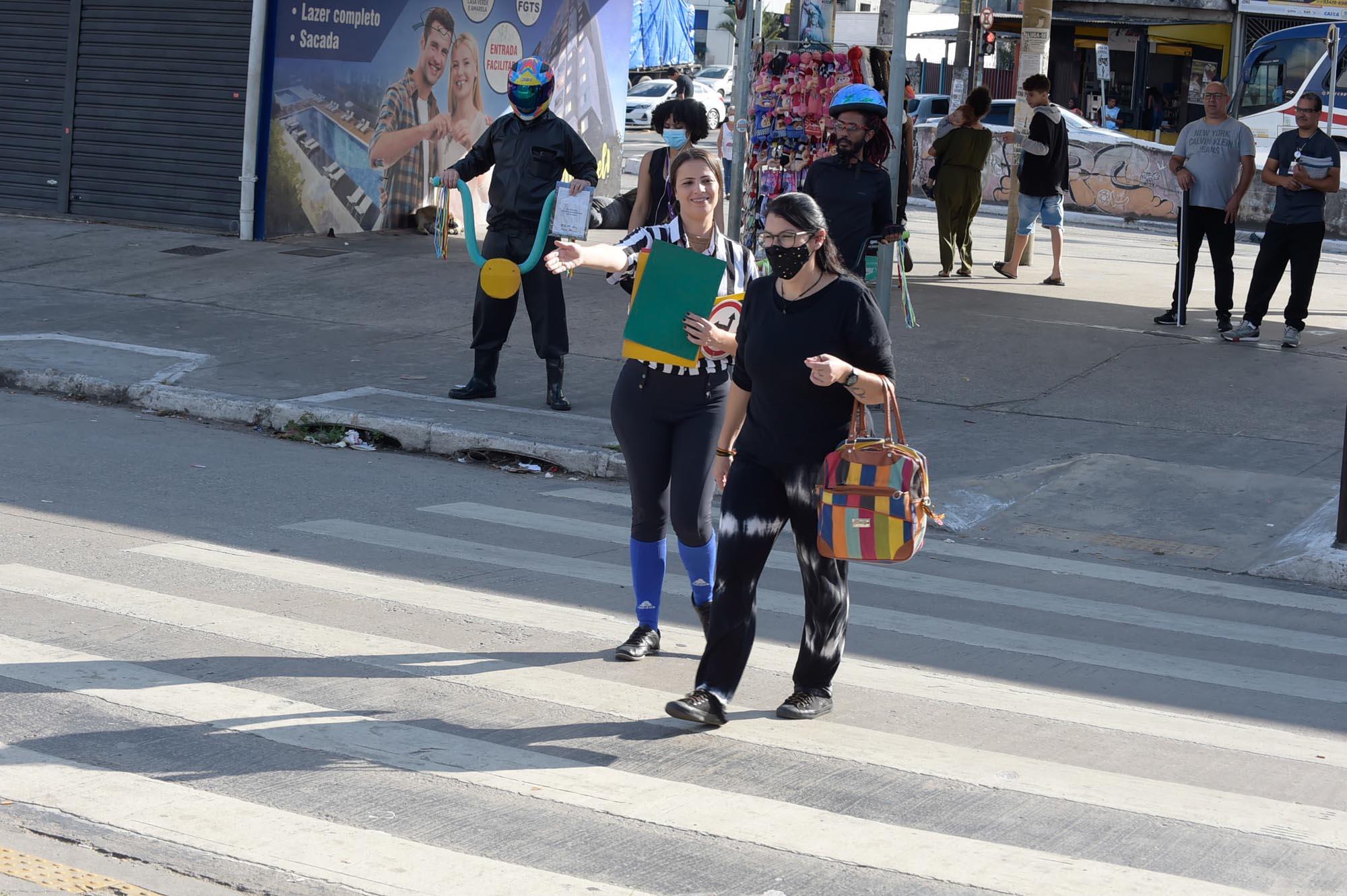 A avenida Juscelino Kubitschek, em frente ao Terminal Urbano Pimentas, recebeu nesta segunda-feira (16) ação lúdica e educativa sobre segurança no trânsito direcionada a pedestres. A intervenção é parte da agenda do Maio Amarelo – Juntos Salvamos Vidas, movimento internacional que acontece no município sob a coordenação da Secretaria de Transportes e Mobilidade Urbana de Guarulhos, com o apoio de entidades e órgãos parceiros.