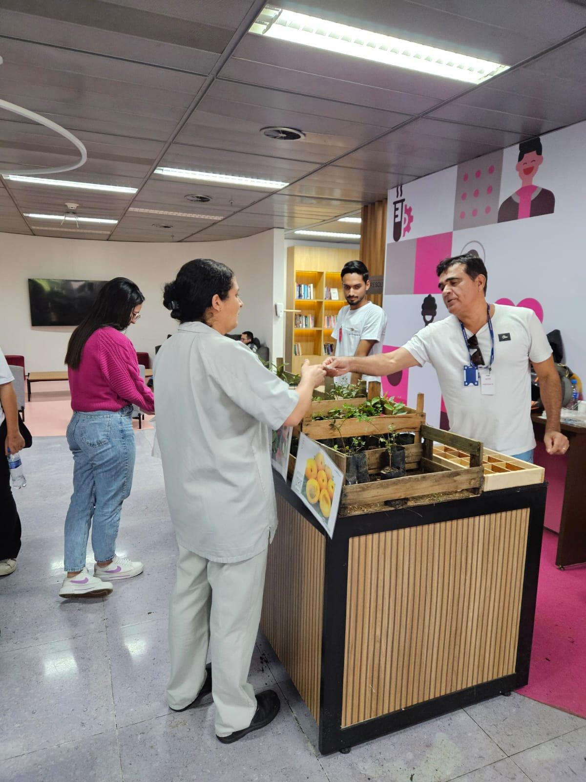 A Prefeitura de Guarulhos participou nesta quinta-feira (20) da Semana do Meio Ambiente do Aché Laboratórios com palestra e doação de mudas de árvores nativas. O engenheiro agrônomo da Secretaria de Meio de Ambiente (Sema), Júlio de Sá, conversou com os participantes sobre a importância da arborização urbana para a diminuição dos efeitos das mudanças climáticas.
