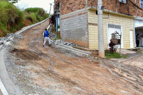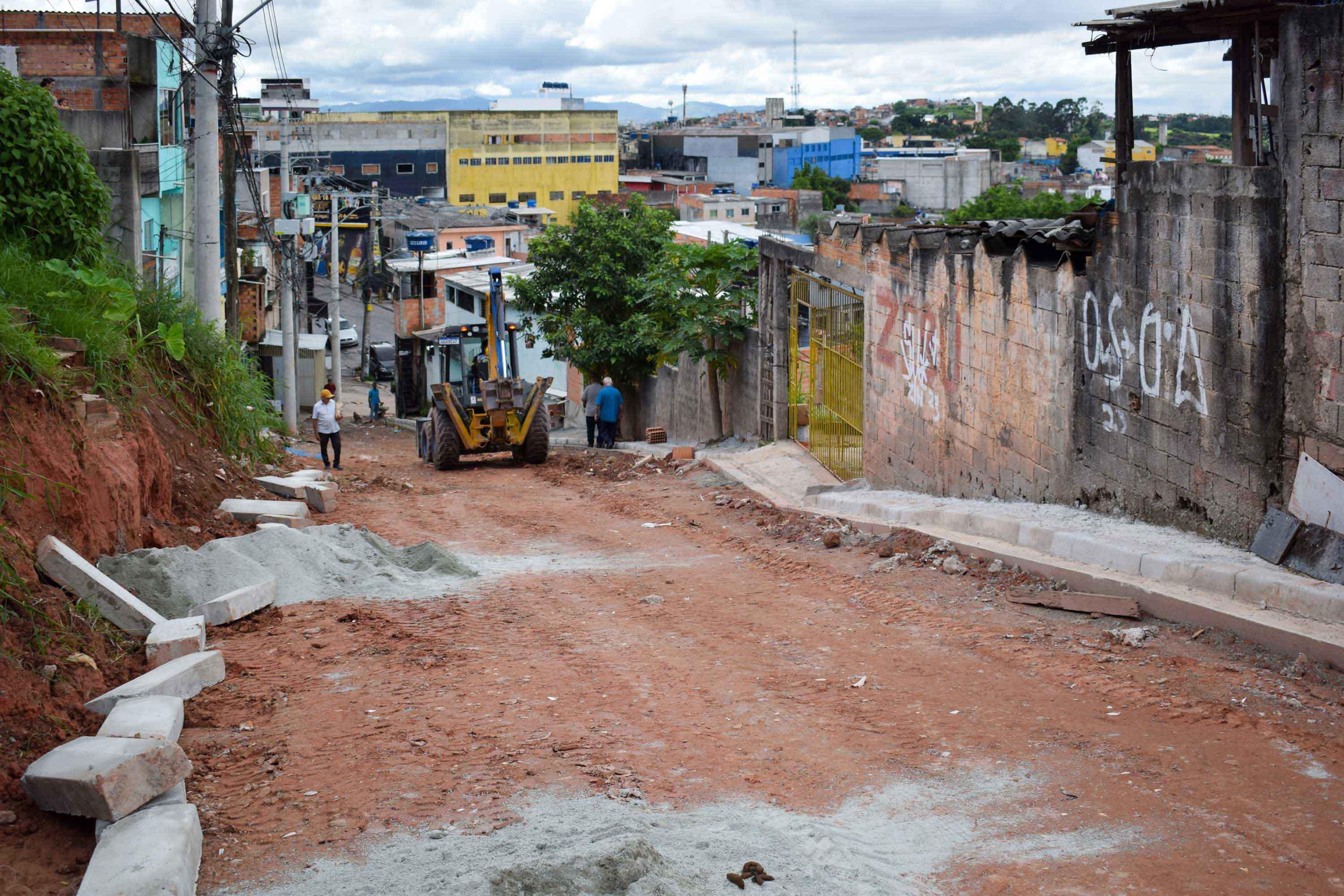 A via está recebendo 600 m² de pavimentação, etapa realizada aos finais de semana com a colaboração da comunidade e apoio técnico da Prefeitura, e instalação de 200 metros de guias. A obra beneficia diretamente 40 famílias, que terão melhores condições de mobilidade e menos acúmulo de poeira nas residências.