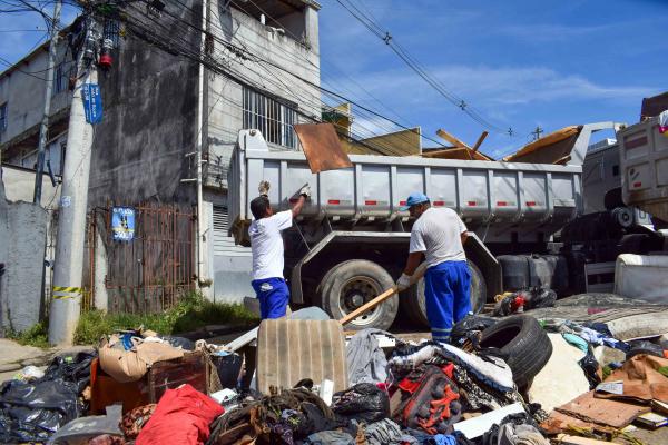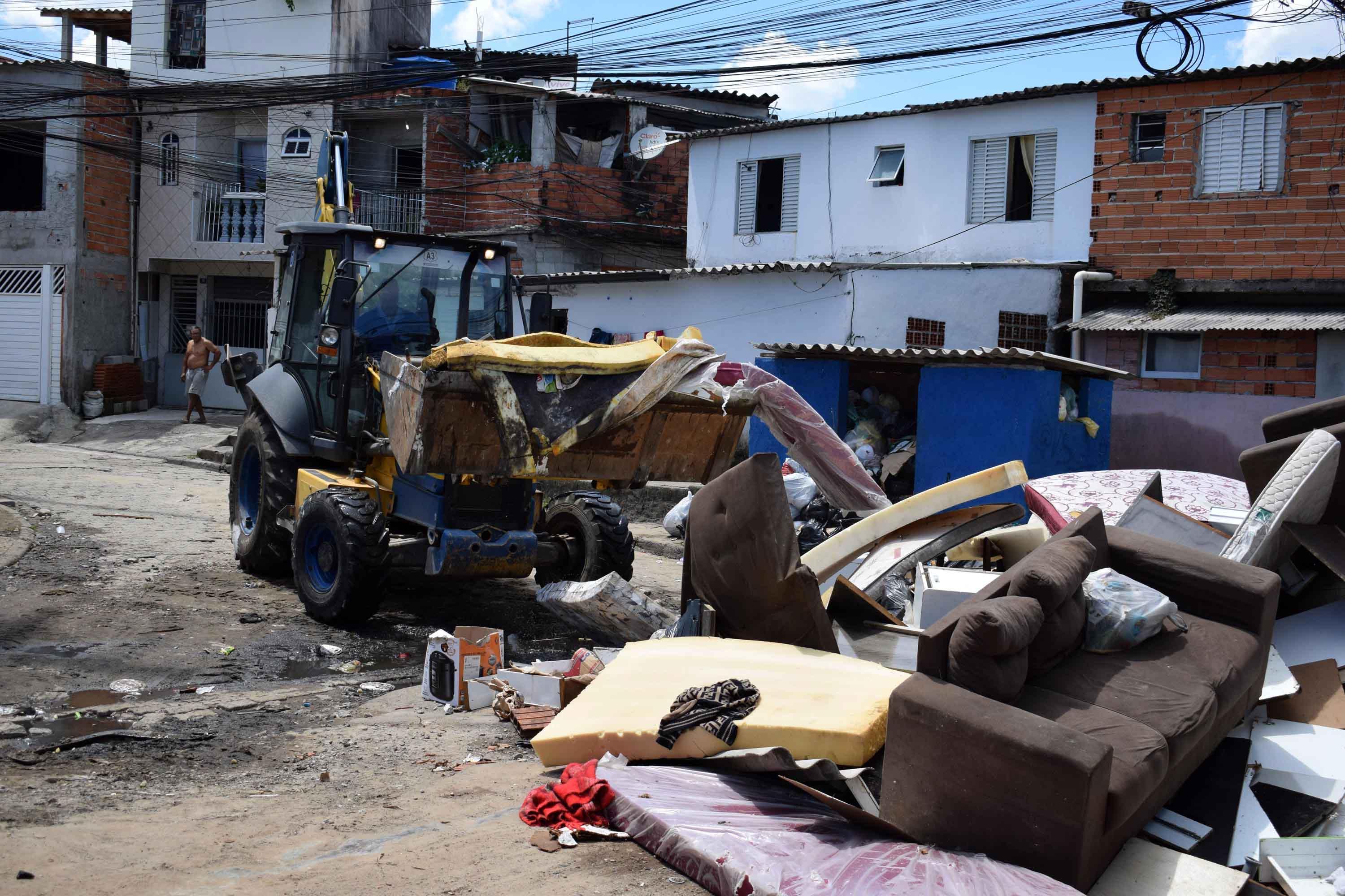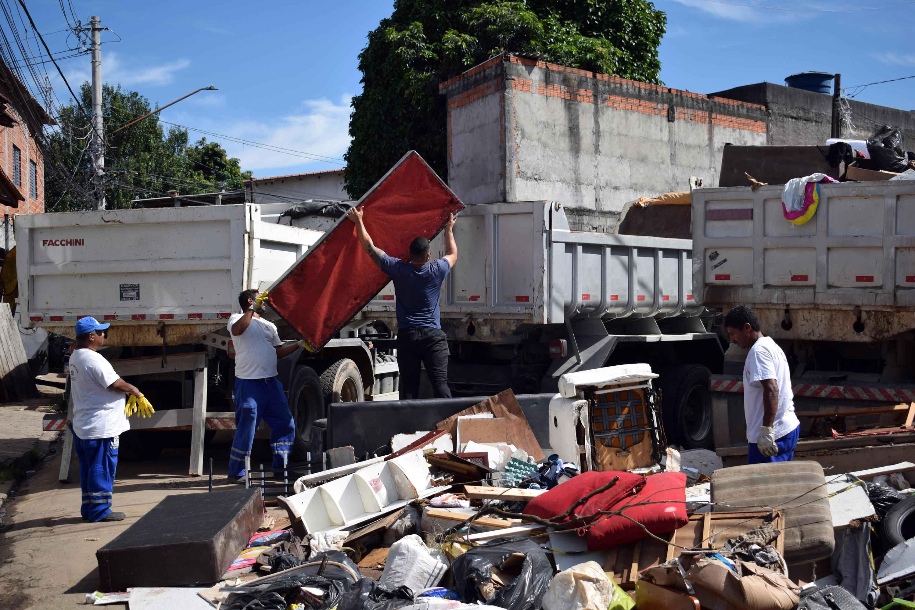 Até o final do dia servidores estimam retirar o equivalente a dez caminhões tipo caçamba de resíduos como colchões, sofás, móveis, roupas e outros materiais que foram levados pela enxurrada. Para agilizar o trabalho estão sendo utilizados três caminhões e uma retroescavadeira.