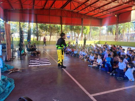 Na segunda-feira (13), 500 alunos da Escola da Prefeitura de Guarulhos Siqueira Bueno assistiram à peça de teatro “Piratas do Asfalto”, que orienta de forma lúdica sobre a importância da segurança no trânsito.