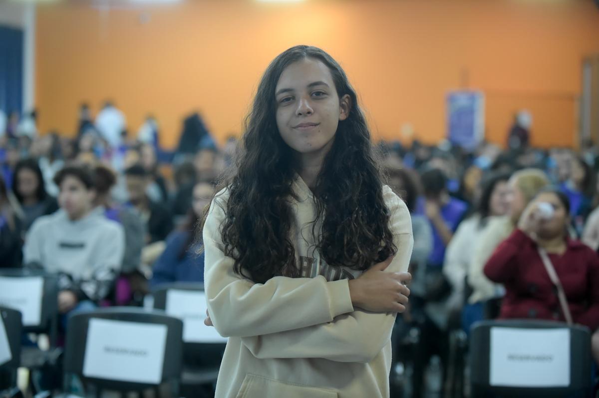 Aos 15 anos, Gabriel do Nascimento, aluno do 1º ano do ensino médio da E.E. Alexandre Lopes, faz plano para estudar psicologia na faculdade. “Espero ganhar experiência e conhecimento profissional com o estágio. Soube do evento pela minha mãe, que viu no Instagram da Prefeitura,” revelou o adolescente.