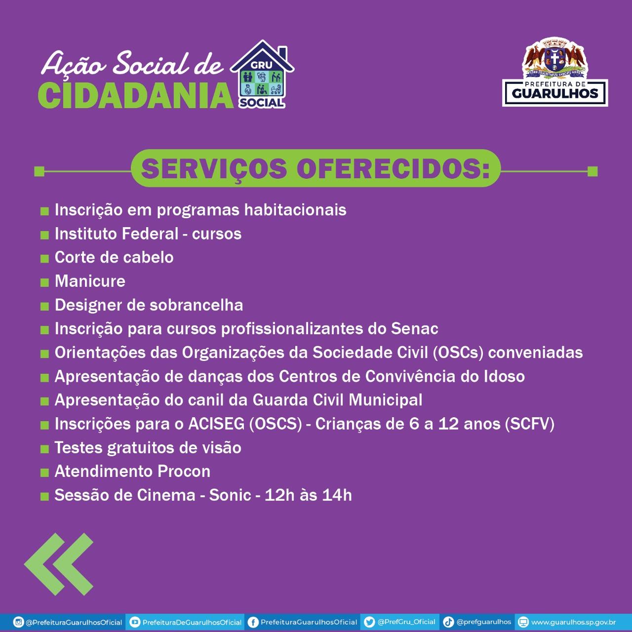 A terceira edição do GRU Social, ação social de cidadania da Prefeitura de Guarulhos, acontecerá no dia 11 de junho no Centro de Referência de Assistência Social (Cras) Morros, situado na rua Samuel Libório de Ávila, 476, no Jardim Adriana.