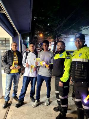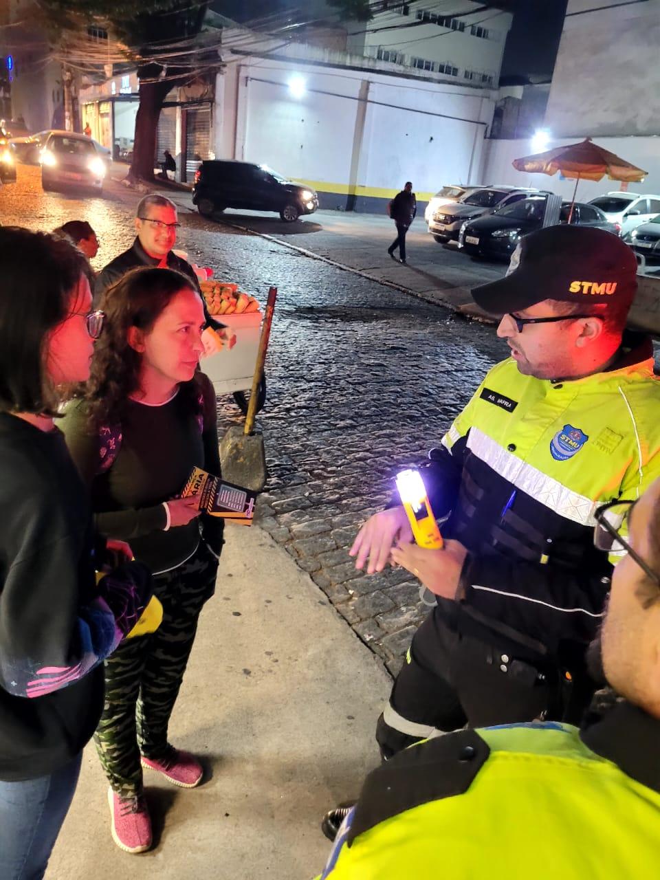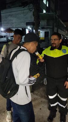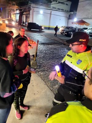 Mais de 300 pessoas, em sua maioria jovens, foram abordadas por agentes e educadores da Secretaria de Transportes e Mobilidade Urbana (STMU) de Guarulhos na última sexta-feira (19) em bares localizados na região central, em mais uma ação educativa da operação Lei Seca – Tolerância Zero. A atividade, que integra o calendário do Maio Amarelo, teve por objetivo orientar sobre a importância de não conduzir veículos após a ingestão de bebida alcoólica.