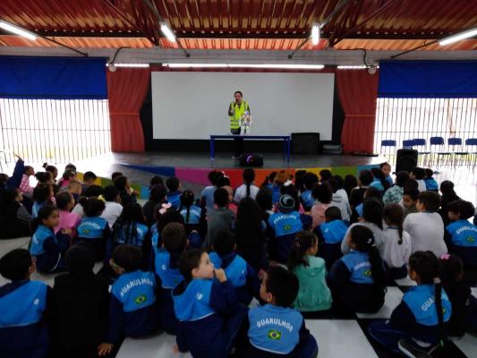 Entre os dias 17 e 19 de abril a EPG Manoel Bonfim, na região do Lavras, recebeu o projeto itinerante da Prefeitura de Guarulhos voltado à segurança no trânsito. Os alunos do terceiro, quarto e quinto ano receberam orientações sobre como devem se comportar como pedestres, sinalização de trânsito, semáforo, travessia, entre outros.