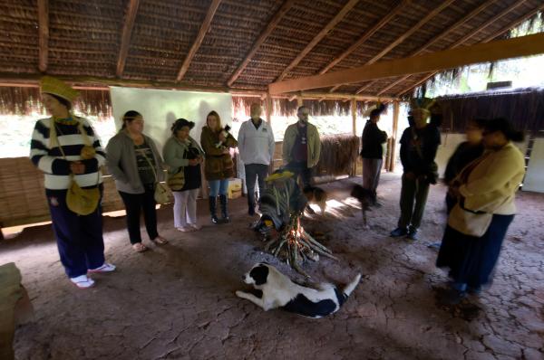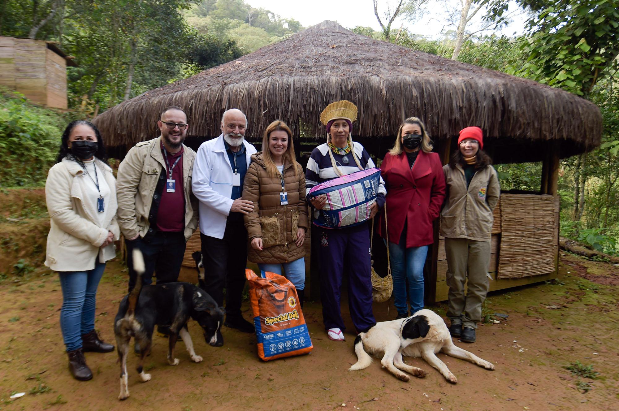 Representantes das diversas etnias presentes na reserva indígena Filhos dessa Terra, no Cabuçu, receberam com danças, fogueira, chá e tapioca a equipe do Departamento de Proteção Animal (DPAN) de Guarulhos, que esteve no local nesta segunda-feira (13) para doar ração e fazer o cadastro de cães e gatos a serem submetidos gratuitamente à cirurgia de esterilização e à colocação de chip de identificação.