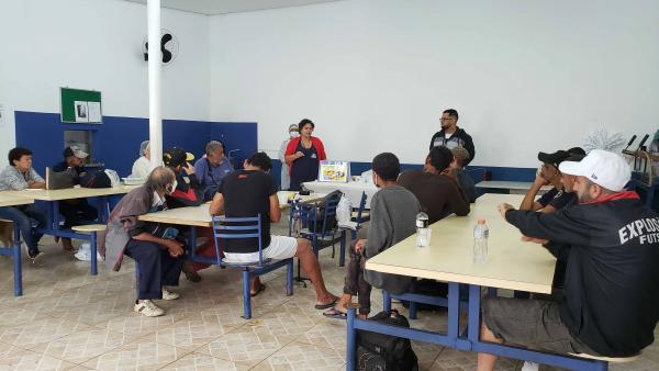Trinta pessoas em situação de rua participaram nesta quarta-feira (27) do programa Saúde Pop, no Centro de Referência Especializado para Pessoas em Situação de Rua – Centro Pop I. A atividade reúne equipes da Prefeitura, por meio do Consultório de Rua, no atendimento dessa população vulnerável. Neste mês o tema foi a Campanha de Conscientização e Combate à Tuberculose para orientar e oferecer os cuidados de saúde necessários para aqueles que apresentam sintomas, já que a doença é contagiosa e pode se espalhar facilmente em ambientes com aglomerações e condições precárias de higiene.