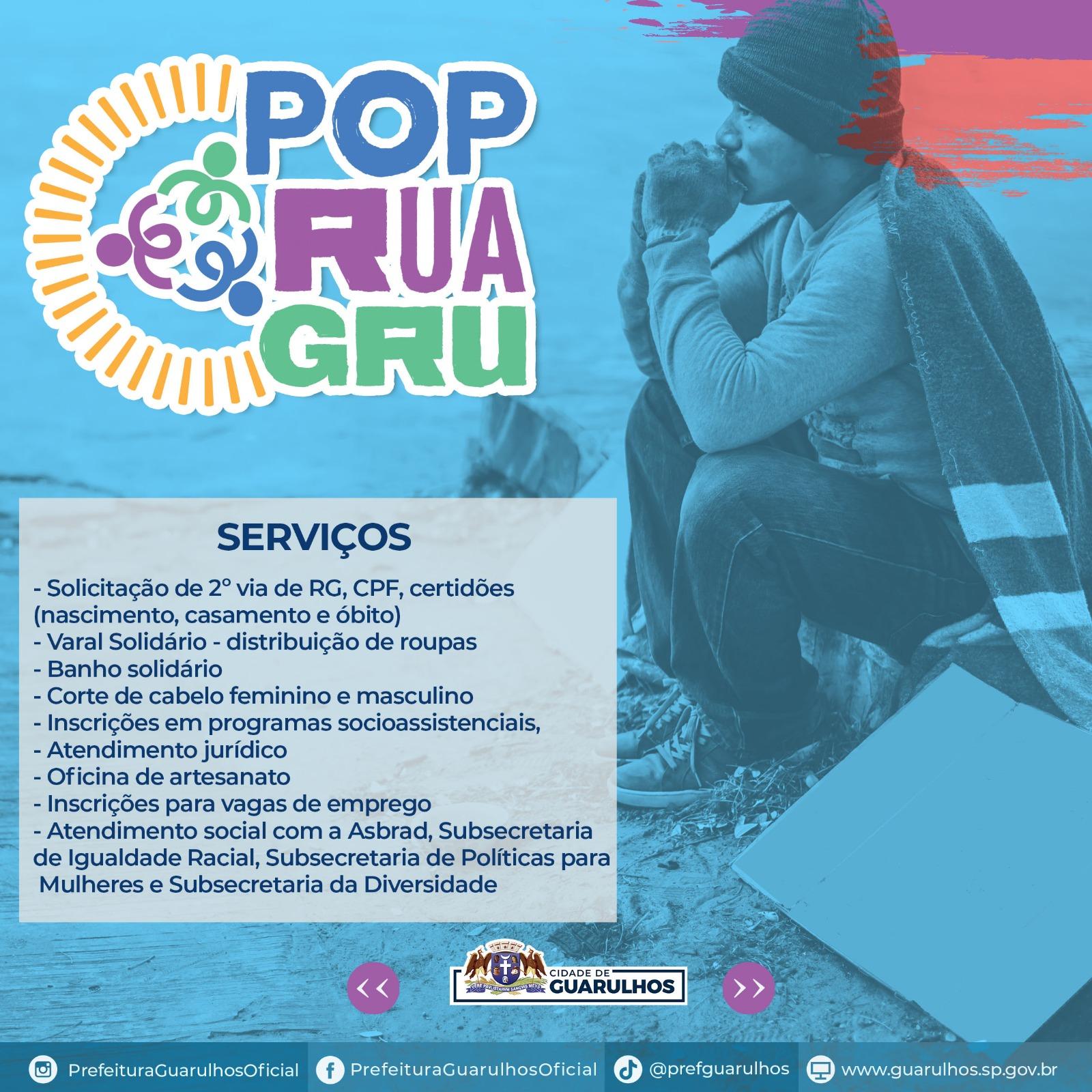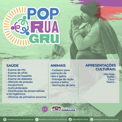 A praça Oito de Dezembro, no Taboão, receberá no próximo dia 2 de junho o PopRua GRU, ação social da Prefeitura de Guarulhos para pessoas em situação de rua. O evento acontecerá das 10h às 16h e oferecerá uma extensa lista de serviços gratuitos.