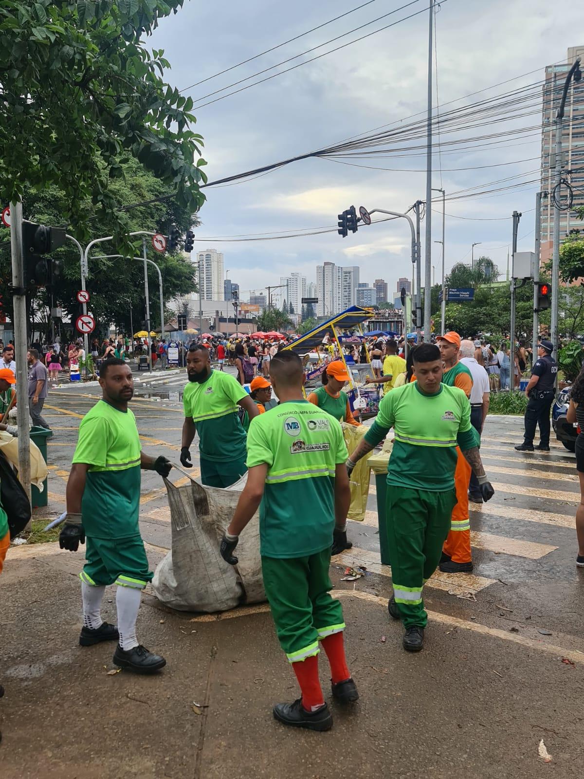 Entre latinhas de alumínio, papel, plástico, papelão, garrafas de vidro, garrafas PET, copos descartáveis, embalagens longa vida e canudos de plástico foi recolhida 1,6 tonelada de resíduos durante a passagem do bloco da Banda Bicha no último sábado (11) na avenida Paulo Faccini, região central de Guarulhos.