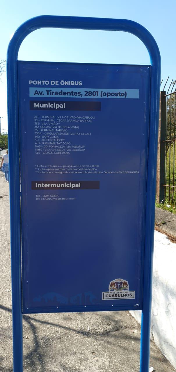 A Prefeitura de Guarulhos, através da Secretaria de Transportes e Mobilidade Urbana, continua a revitalização dos totens de informações nas paradas de ônibus municipais. O trabalho já concluiu 14 dos 59 previstos. O término do serviço deve acontecer até o final do mês de julho.