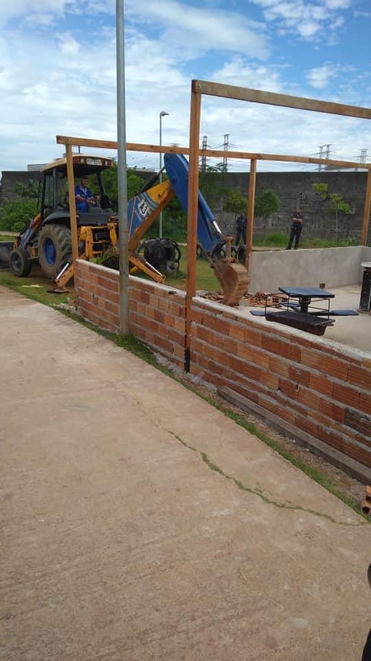 Em uma ação conjunta, a Prefeitura de Guarulhos promoveu na manhã desta terça-feira (15) o desfazimento de uma estrutura irregular em alvenaria em área pública na praça da rua Canadense, na Vila Flora. A construção demolida era utilizada para a realização de pancadões.
