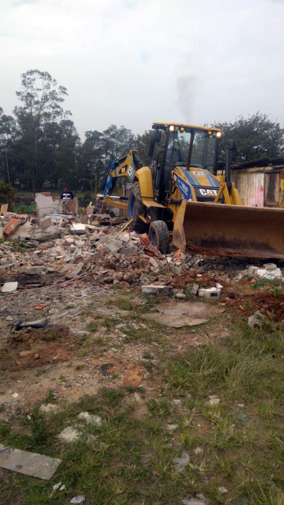 Equipes da Prefeitura de Guarulhos estiveram na manhã desta terça-feira (30), em uma área de várzea do rio Tietê para remover construções em alvenaria não habitadas localizadas numa área considerada de risco, no final da rua da Estação, na Vila Any, região do Pimentas.