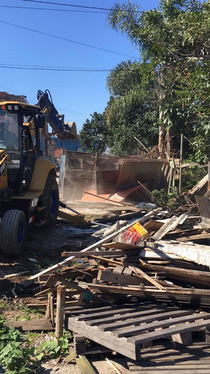 A operação teve por finalidade a desobstrução das margens para a entrada de máquinas que farão a limpeza do córrego. As construções foram demolidas e o entulho removido.