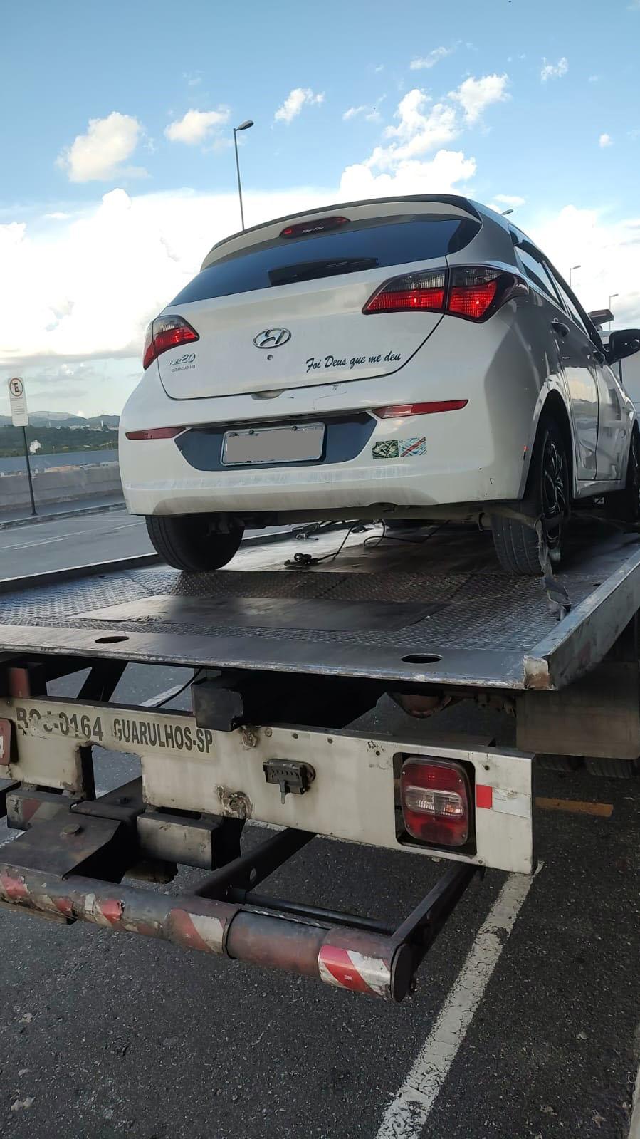 Além do débito, os agentes verificaram que o HB20 estava registrado em nome de outro proprietário e possuía 64 autuações nos últimos 12 meses, 33 delas por excesso de velocidade.