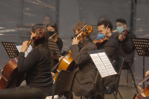 Ao longo do lançamento do programa os participantes prestigiaram concerto da Orquestra GRU Sinfônica, sob regência do maestro Emiliano Patarra, enquanto recebiam orientações de funcionamento do programa nesse momento de retomada pós-pandemia.