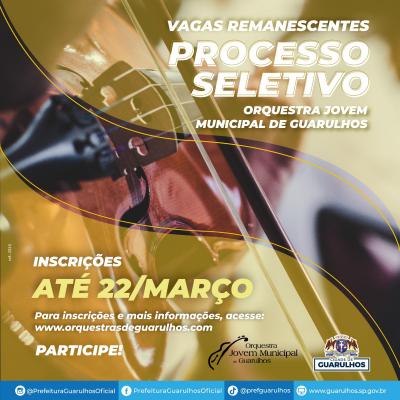 As vagas remanescentes são destinadas a estudantes dos instrumentos violino (4 vagas), viola (2), violoncelo (2), contrabaixo (3), oboé (2), clarinete (1), fagote (2), trombone (1) e piano (1).