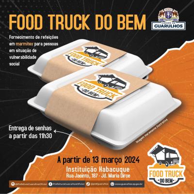 O Food Truck do Bem, programa da Prefeitura de Guarulhos que distribuiu diariamente 250 marmitas gratuitas, passará a atender no Jardim Maria Dirce a partir do próximo dia 13 (quarta-feira). O equipamento estará estacionado na Instituição Habacuque, na rua Jacinto, altura do número 187, e começa a distribuir as senhas às 11h30 para a entrega das refeições, que acontece às 12h.