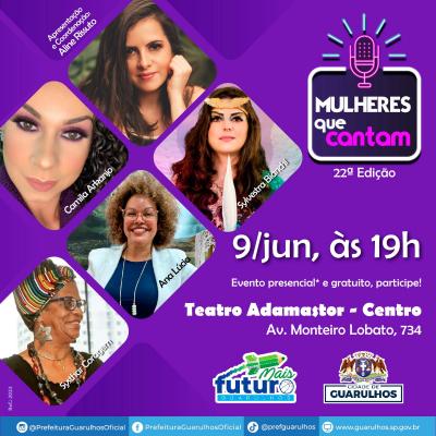 A 22ª edição do programa Mulheres que Cantam, que acontece nesta sexta-feira (9), às 19h, no teatro Adamastor, traz ao palco as cantoras Sylvestra Bianchi, Camila Arkanjo, Systhar Coragem e Ana Lúcia, além das bailarinas da Escola de Dança Rita Camilo. O programa tem classificação livre e é aberto ao público em geral.