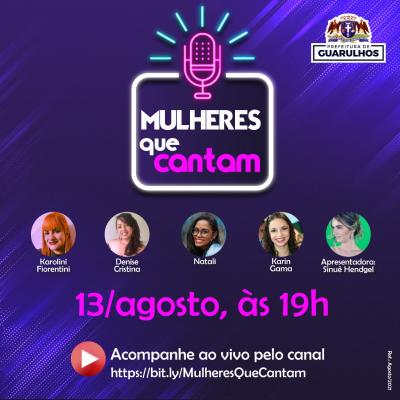 Iniciativa da Secretaria de Cultura de Guarulhos, o projeto Mulheres que Cantam é apresentado pela professora Sinuê Hendgel e coordenado pela cantora, pianista e compositora Aline Rissuto.